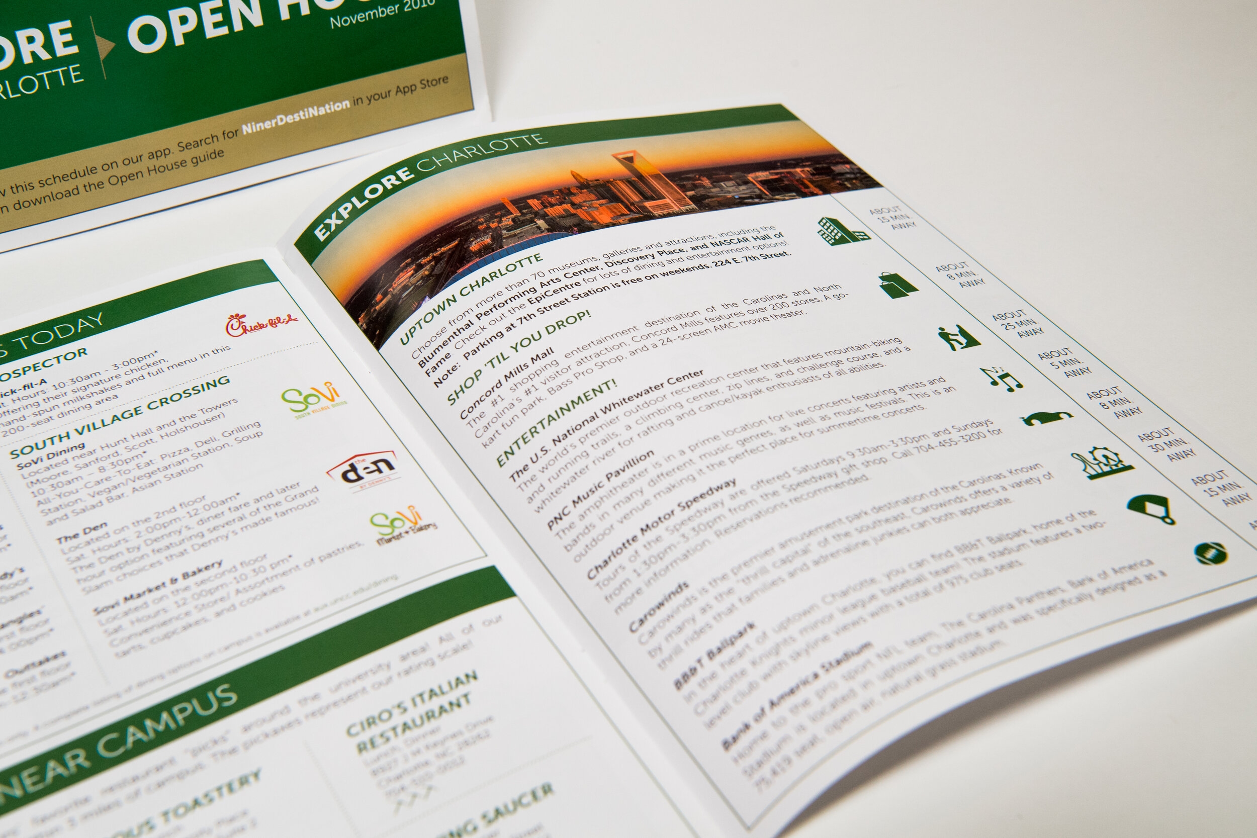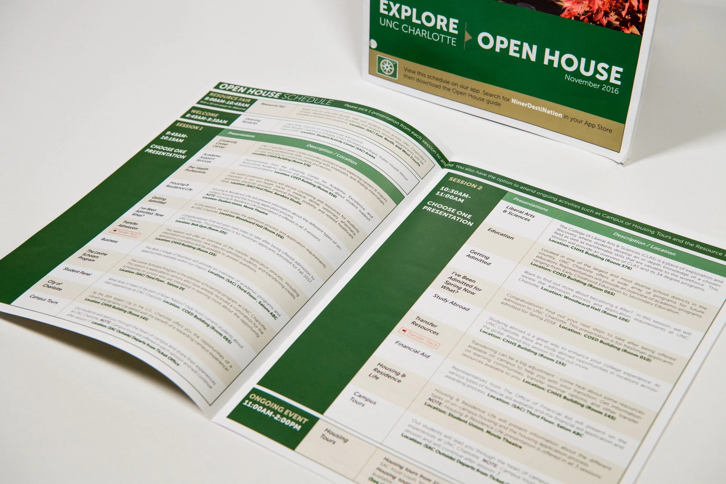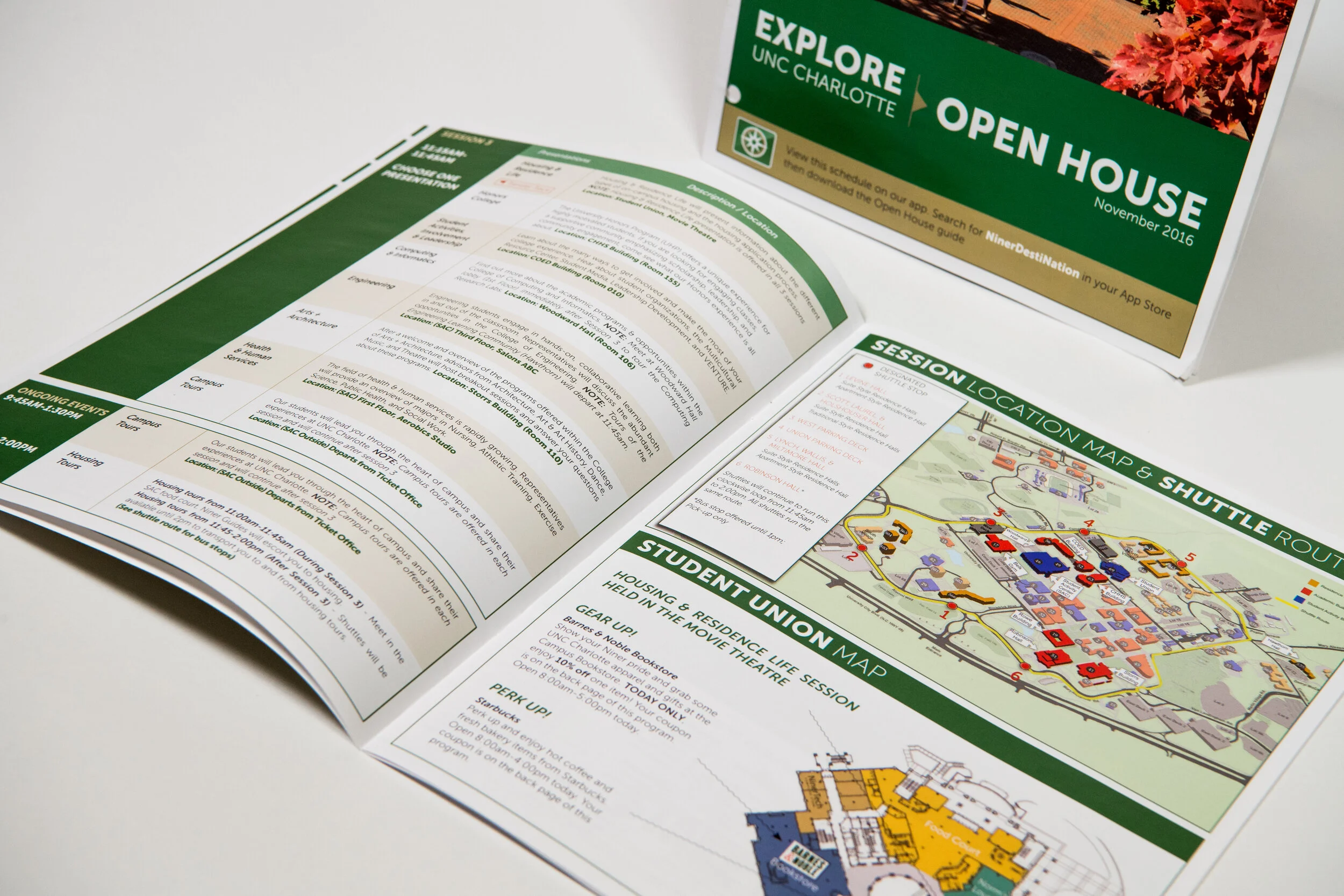 Project Description: On this project I worked with event directors of our admissions open house event to create a printed event program for guests to navigate our session offerings, campus tours, and maps to find their way around campus. This project required collaboration and attention to detail, as well as, easy readability to allow guests to plan their day while visiting campus.